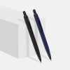Bolígrafo metálico con acabado mate y clip a color. Mecanismo pulsador.