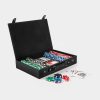 Incluye estuche de madera con juego de ajedrez, backgammon, 2 barajas plastificadas y domino de 28 piezas.