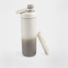 Termo doble pared . Cerrado al vacío. Pared interna y externa de acero inoxidable. Terminado en texturizado rugoso que le brinda un toque moderno y original. Incluye tapa de plástico con sistema de rosca y popote más ancho, ideal para bebidas como Frappes o licuados. Su asa extra grande le permite un agarre más cómodo y seguro. Además, cuenta con un tapón y un sistema de rosca que se integra de manera práctica al aditamento de silicón, evitando que se extravíe. Ideal para llevar a todas partes con un look moderno y diferente. Mantiene bebidas calientes por 6 hrs y frías hasta 12 hrs. Capacidad de 40 Oz. Base de 8.3 cm de diámetro. Incluye caja individual.